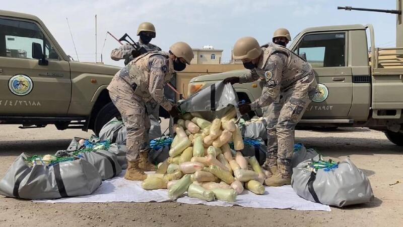 ونشرت الصفحة الرسمية لقوات حرس الحدود السعودي على "تويتر" صورا ترصد جانبا من عملية إحباط تهريب شحنات مخدرات تضم أكثر من 700 ألف قرص مخدر وأكثر من طنين من مادة الحشيش المخدر.