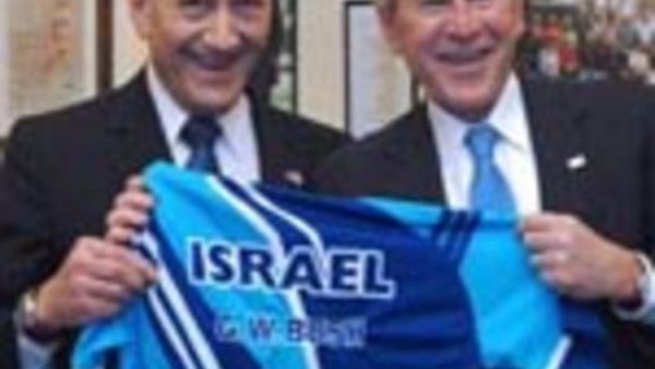 وقدم بوش بدوره الى اولمرت المعروف انه يركض مسافة عشرة كيلومترات يوميا, كرة قدم عليها العلمان الاسرائيلي والامريكي، وحقيبة رياضية وازرار قميص.