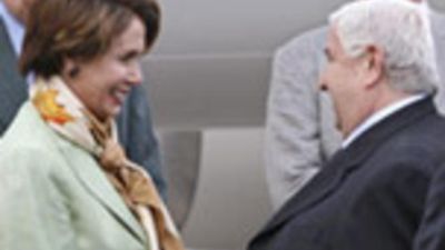 واستقبلت بيلوسي الديمقراطية ووفدها العالي المستوى بحفاوة في مطار دمشق الدولي حيث كان في انتظارها وزير الخارجية وليد المعلم.