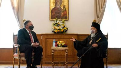 وبدأ بومبيو هذه الزيارة التي أثار برنامجها انتقادات انقرة بلقاء مع بطريرك القسطنطينية المسكوني برتلماوس الأول، الزعيم الروحي للكنيسة الارثوذكسية، في مقر البطريركية قبل أن يقوم بجولة في مسجد رستم باشا القريب.