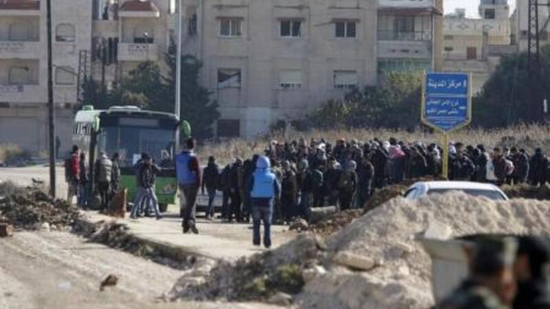 وقال ناشطون بالمعارضة والمرصد السوري إن مغادرة المجموعة الأولى من المسلحين وعائلاتهم من حي الوعر بدأت قبل أسبوع وإن من المتوقع أن تكون عملية الإجلاء واحدة من أكبر العمليات من نوعها.