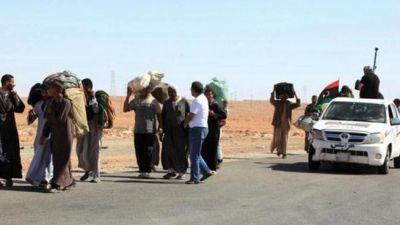 ليبيون يغادرون بني وليد اثر الاشتباكات/ارشيف/أ.ف.ب