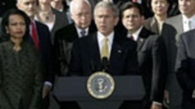لكن بوش قال ان بلاده مسؤولة عن تقديم الدعم للقوات الاميركية في العراق في تحد غير مباشر لبعض الديمقراطيين الذين تحدثوا عن وقف التمويل للمهمة في العراق. وقال "ايا كان الحزب الذي تنتمي اليه كلنا علينا مسؤولية ضمان ان تتوفر لهذه القوات الموارد والدعم الذي تحتاجه لتحقيق النصر."