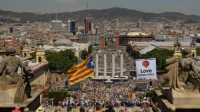 وقرأ المدرب السابق لفريق برشلونة لكرة القدم بيب غوارديولا امام قصر مونجويك بيانا امام30 الف شخص بحسب البلدية و47 الف شخص بحسب المنظمين.