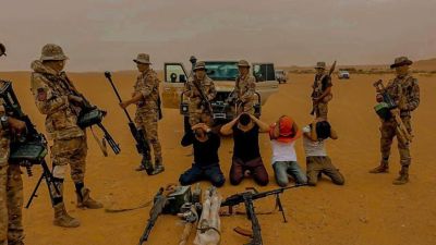 وقالت المديرية في بيان ان قوات الأمن داهمت وكر العصابة وسط الصحراء الليبية واعتقلت أربعة منهم وعثرت بحوزتهم على أسلحة ومواد مخدرة فيما قالت رئاسة الأركان انها اعتقلت اربعة من افراد العصابة «من رؤوس تهريب المخدرات »، وذلك عندما كانوا يقودون سيارتهم المصفحة ونوهت الى انهم ينتمون الى جنسيات عربية وتم القبض عليهم بعد نصب كمين محكم في أثناء انتظارهم لتسلم إحدى شحنات التهريب.
