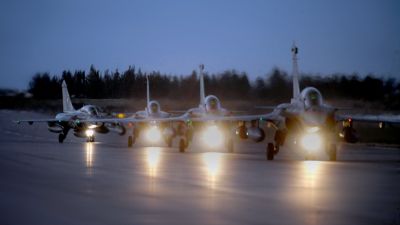 بدأت السبت، فعاليات التدريب الجوي المصري الفرنسي المشترك بإحدى القواعد الجوية المصرية، بمشاركة عدد من الطائرات المقاتلة متعددة المهام، مع مراعاة كافة الإجراءات الاحترازية لفيروس كورونا.
