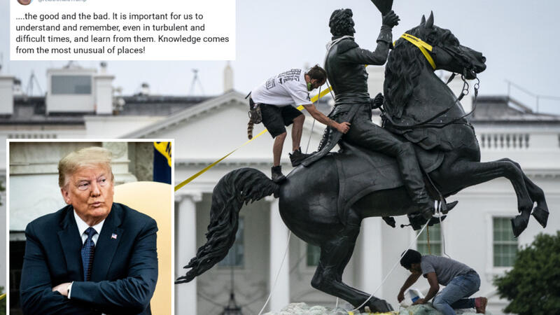 وأضاف ترامب محذرا من إلحاق الضرر بالتماثيل: “عقوبات السجن الطويلة بانتظار أولئك الذين يرتكبون هذه الأعمال غير القانونية ضد بلدنا العظيم”.