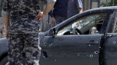ارشيف/ رجل امن عراقي يقف امام سيارة تعرضت لهجوم بالرصاص