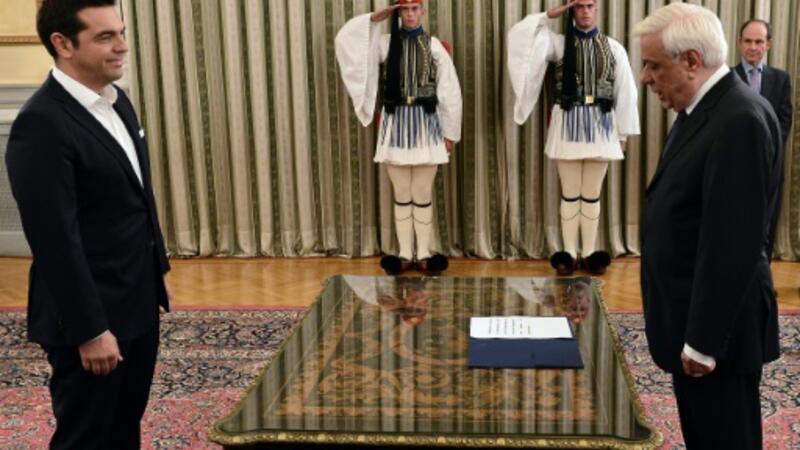 وبعد ثمانية اشهر من انتخابه للمرة الاولى في كانون الثاني/يناير، ادى تسيبراس مجددا مساء الاثنين اليمين الدستورية في حفل مدني.