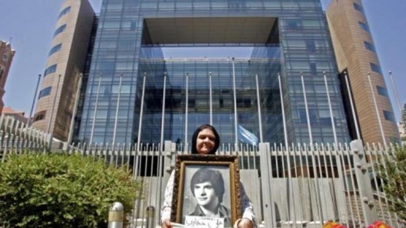 امرأة لبنانية تعتصم امام مقر الامم المتحدة في بيروت الاسكوا