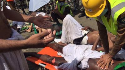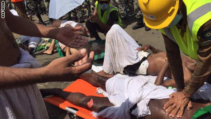 وقد أظهرت صور جثث عشرات الأشخاص على الأرض، مرتدين ملابس الإحرام البيضاء.