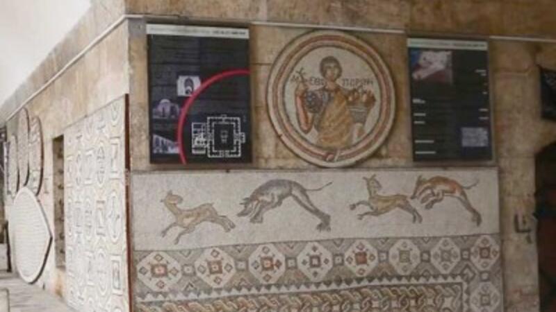 ويضم متحف معرة النعمان اكثر من الفي متر مربع من لوحات الفسيفساء الاثرية.