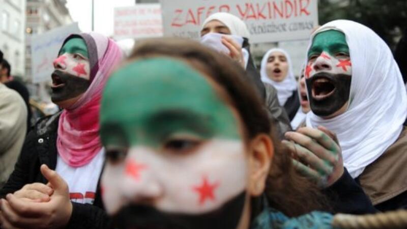 اتراك وسوريون يتظاهرون امام القنصلية السورية في اسطنبول للتنديد بنظام الرئيس السوري بشار الاسد
