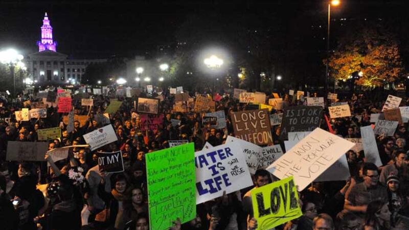 وتحت تأثير صدمة فوز ترامب، نزل عشرات الآلاف مساء الاربعاء للتظاهر في كل انحاء البلاد، من نيويورك الى لوس انجليس وامام البيت الابيض للاحتجاج على انتخابه والتنديد بآرائه التي يرون انها تنم عن عنصرية وتمييز حيال النساء وكره للاجانب.