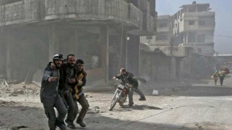 وتشن قوات النظام منذ 18 شباط/فبراير حملة عنيفة على مناطق سيطرة الفصائل المعارضة في الغوطة الشرقية، يتخللها قصفاً جوياً وصاروخياً ومدفعياً كثيفاً. ما تسبب بمقتل المئات وفق المرصد السوري لحقوق الانسان.