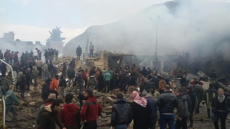 وأفاد ناشطون بأن التفجير الذي هز المدينة كان انتحاريا نفذه شخص باستخدام حزام ناسف وأن التفجير خلف قتلى وجرحى بعضهم حالتهم خطرة، وأن من بين القتلى مدنيين وعناصر من الجبهة الشامية التي تشكل أحد فصائل المعارضة المسلحة.