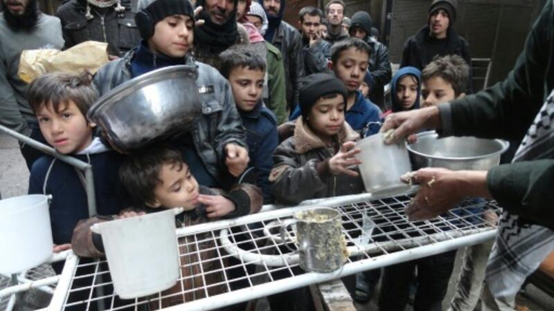 ويعاني المخيم من ازمة انسانية قاسية في ظل نقص فادح في المواد الغذائية والادوية، ما تسبب بوفاة نحو مئتي شخص، بحسب المرصد السوري لحقوق الانسان.