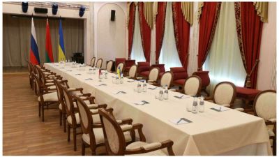 يتجلى ميل الجانب الروسي إلى السلام في حقيقة أنه بعد ظهر يوم 25 فبراير، انتظاراً لاحتمال إطلاق مفاوضات مع القيادة الأوكرانية، تم تعليق تقدم القوات الرئيسية للقوات الروسية. ومع ذلك، في اليوم التالي تم استئناف العمليات الخاصة في أوكرانيا بسبب رفض كييف للتفاوض. كان من المفترض إجراء هذه المفاوضات في مينسك، وتم تشكيل الوفد الروسي لهذا الغرض. وفي البداية، عرض الجانب الأوكراني إجراء محادثات في وارسو. ولكن بعد ذلك، بناءً على نصيحة من رعاتهم الأميركيين، تراجع الأوكرانيون عن المشاركة في محادثات.