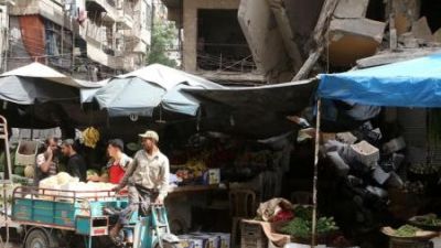 ومع شح المساعدات في حلب ارتفعت أسعار الغذاء في الأسواق وأضافت ضغوطا فوق ما تعانيه ميزانيات الأسر التي تئن تحت وطأة خمس سنوات ويزيد من الحرب الأهلية.