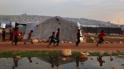 أطفال سوريون في مخيم أطمة. 6 كانون الأول، 2023م. وكالة الصحافةالفرنسية.