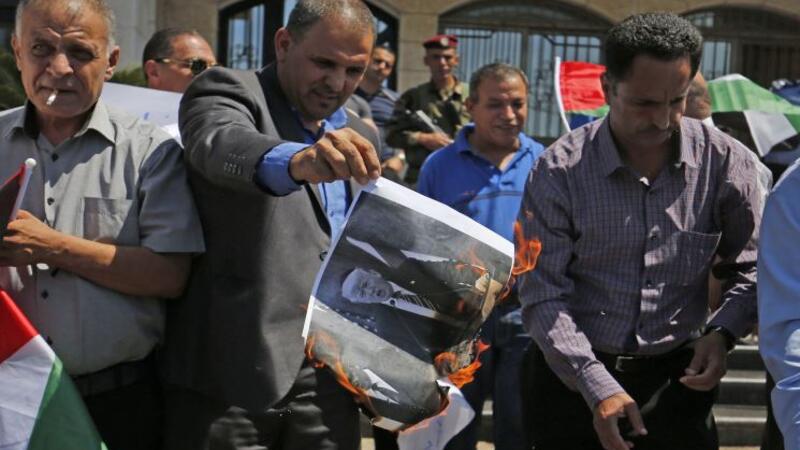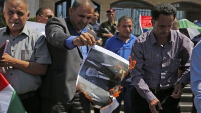 أحرق نشطاء فلسطينيون، الثلاثاء، صورا للرئيس الأمريكي دونالد ترامب، خلال وقفة بمدينة رام الله، تنديدا بقرار إدارته، وقف مخصصاتها لوكالة غوث وتشغيل اللاجئين الفلسطينيين “أونروا”.