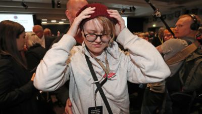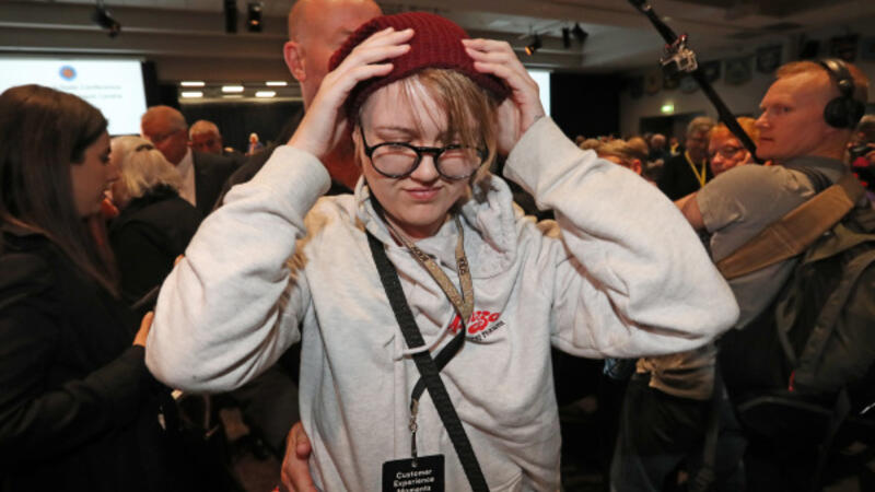 وانقض حراس الأمن على المحتجة التي كانت ترتدي قبعة صغيرة وملابس غير رسمية وأبعدوها بعد دقائق من الهجوم.