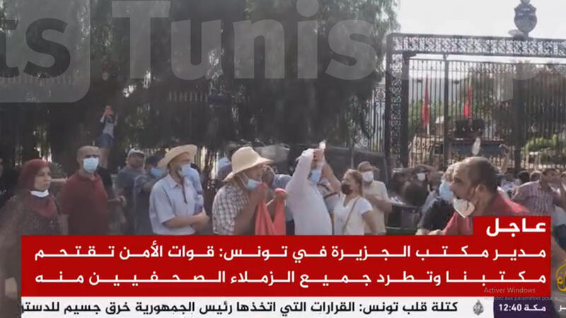 وقال مدير مكتب قناة الجزيرة في تونس، لطفي حجي: "قوات الأمن تقتحم مكتب الجزيرة في تونس وتأمر بإخلائه من الصحفيين والتقنيين"، مشيرا إلى أنهم لم يتلقوا أي اشعار مسبق بهذا الخصوص.