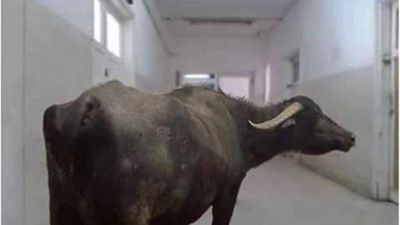 جاموسة تثير الجدل وتتفقد المرضى في مستشفى سوهاج في مصر