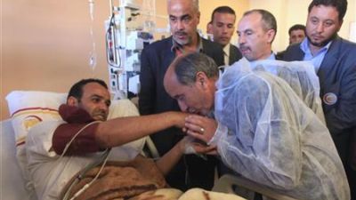 مصطفى عبد الجليل رئيس المجلس الوطني الانتقالي الليبي يزور احد المصابين في بنغازي