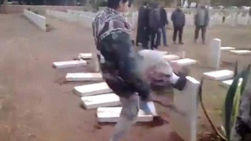 وقالت الصحيفة إن القبور تظهر وهي تُدمر من قبل ما يبدو أنها ميليشيا اسلامية في شريط فيديو صوّرته الجماعة الأخيرة بنفسها ويظهر فيه أكثر من 30 عنصراً مسلحاً وهم يحطمون شواهد القبور، في حين يقوم آخرون باستخدام المطارق لتكسير التوابيت.