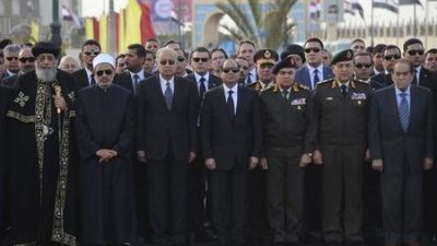 وبعد الجنازة التي أقيمت بمنطقة المراسم العسكرية في شمال شرق القاهرة رأس البابا تواضروس الثاني صلاة الجنازة في الكنيسة البطرسية بالعاصمة.