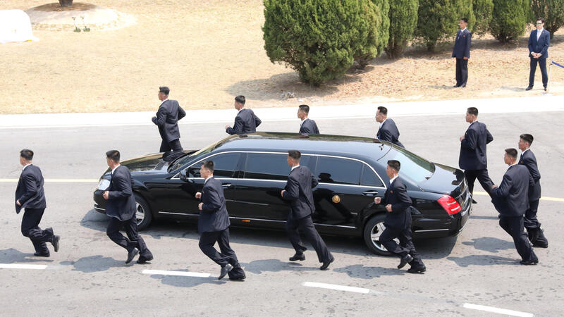 حراس كيم الشخصيون يواكبون سيارته جريا على الاقدام (فيديو)