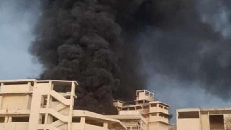 وتشير التقارير الى انهيار الطابق الخامس من المعمل وهو ما اكدته مقاطع فيديو تداولها مغردون وناشطون على وسائل التواصل الاجتماعي