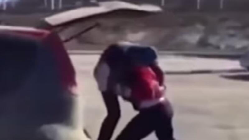 وغادرت الشابة سيارتها منفعلة، وسحبت سائق سيارة أخرى من داخل مركبته، ثم وضعته فوق كتفها، وألقته بعد ذلك في صندوق سيارتها.