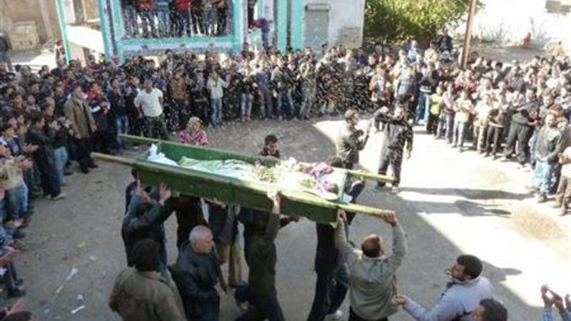 ومع سقوط ربع القتلى من قوات الامن تخرج في كل يوم تقريبا جنازات عسكرية لجنود قتلوا بأيدى من تصفهم السلطات بالارهابيين. ولا يمكن التحقق من تقديرات اعداد القتلى المتفاوتة على نطاق واسع. والروايات الشخصية يمكن الطعن فيها ومناقضتها. ولا يمكن اعتبار كل جزء من تسجيل الفيديو حقيقي او انه التقط حديثا. لكن مئات التسجيلات المصورة التي تأتي من سوريا وكثير منها من مصادر معروفة لرويترز ويفحصها صحفيون مستقلون على معرفة بمدينة حمص ومدن اخرى تعرض صورة لا يمكن انكارها لعنف شديد. وعرض مقطع مصور نشر يوم الخميس جثة لشاب ممددة في شارع خال من المارة بجانب متنزه خال وقد تم سحبها بواسطة كابل كان ملفوفا حول كاحله. وجرى سحب الجثة الى مأوى عبر تقاطع طرق وعبر بركة من الوحل.