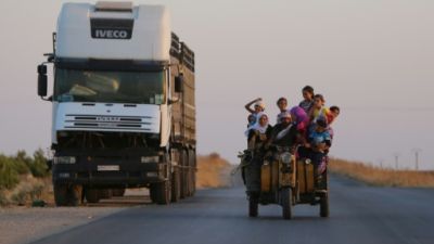عائلة سورية على دراجة شمال شرق الحسة