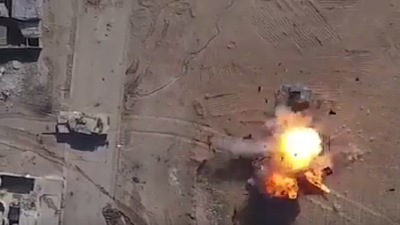 بث تنظيم "داعش" الإرهابي فيديو مروعا لعملية استهداف إحدى مدرعات الجيش العراقي بصاروخ مستخدما في ذلك طائرة مسيرة.