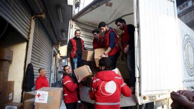 دخلت قافلة مساعدات طبية، مؤلفة من 4 شاحنات تابعة لمنظمة الهلال الأحمر السوري، مساء السبت، إلى مدينة دوما المحاصرة من قبل النظام، في الغوطة الشرقية بريف العاصمة السورية دمشق، بعد انقطاع دام أكثر من سبعة أشهر.