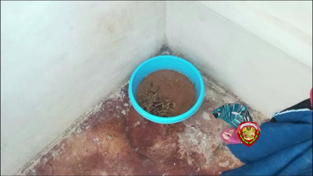 وبتحري المنزل شوهدت غرفة مبنية على السطح مقابل باب الدرج، مركب عليها باب حديدي يوجد عليه جنزير وقفلان، وبفتح الباب ودخول الغرفة تم العثور فيها على فتاة بالعقد الرابع من العمر نحيلة البنية وبحالة صحية سيئة، وبينت أنها محتجزة من قبل ذويها بالغرفة منذ حوالي خمس سنوات، وبالتحقيق مع المذكورة تبين أنها خريجة كلية التربية ومعلمة صف، وأنها تزوجت مرتين وتطلقت كونها لا تنجب أطفالا.