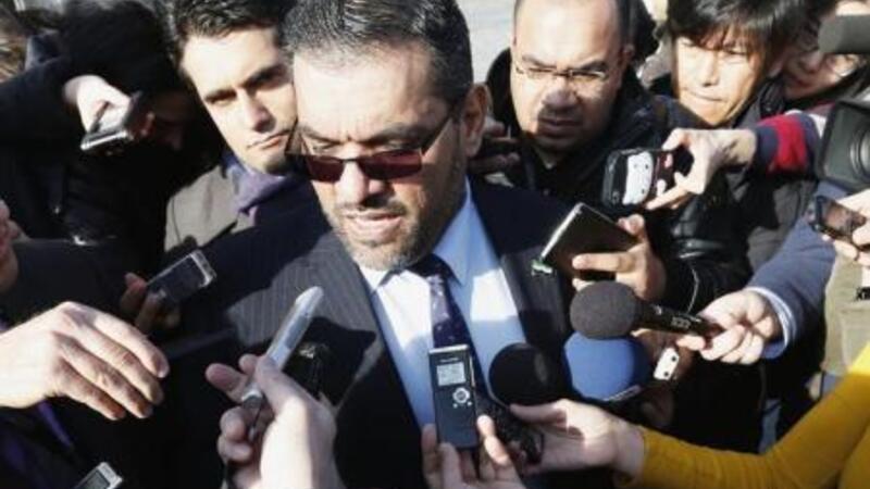 المعارض السوري أنس العبدة يتحدث لوسائل الإعلام في جنيف
