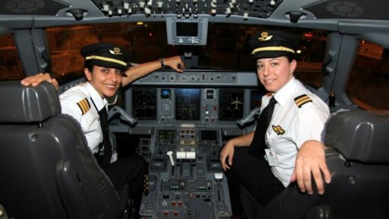 طيارتان اردنيتان داخل مقصورة طائرة تابعة للملكية الأردنية