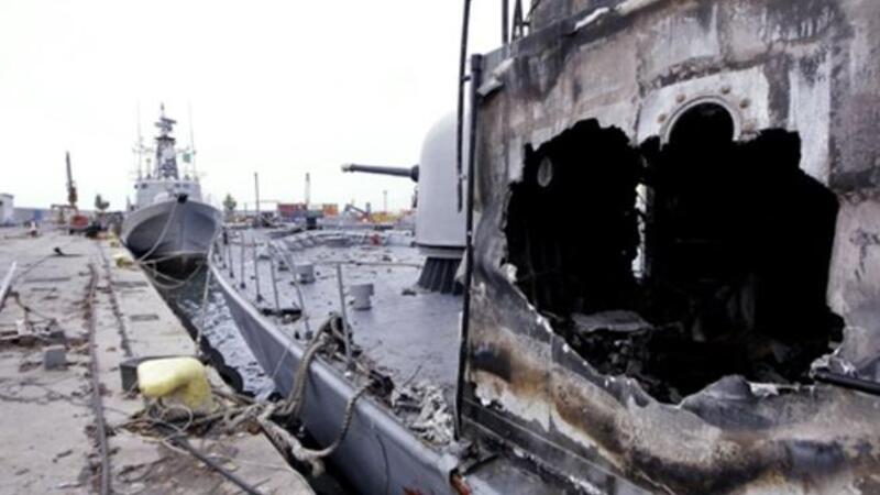 آثار قصف الناتو للموانىء الليبية وإعطاب زوارق حربية