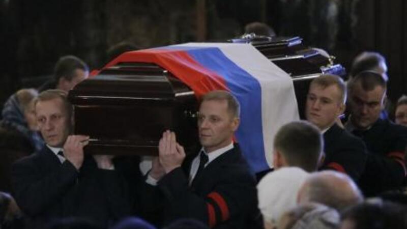 أقامت روسيا مراسم تأبين مهيبة يوم الخميس لأندريه كارلوف سفير البلاد لدى تركيا الذي اغتاله في أنقرة يوم الاثنين رجل كبر وصاح قائلا "لا تنسوا حلب".