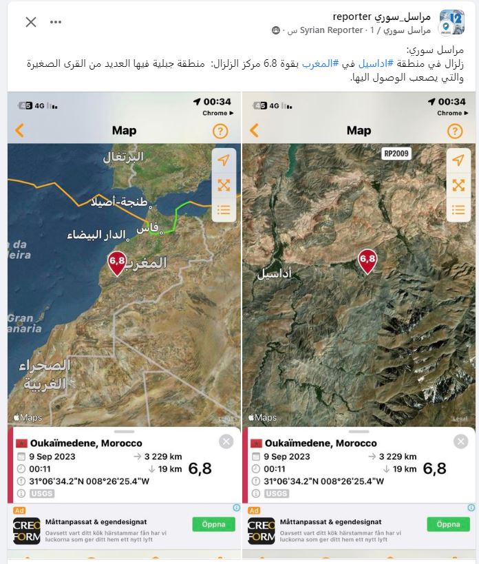 من جهته أعلن المركز الألماني لأبحاث علوم الأرض، أن زلزالا بقوة 7 درجات هز المغرب، في الساعات الاولى من يوم السبت وقال أن مركز الزلزال كان على عمق 10 كيلومترات.