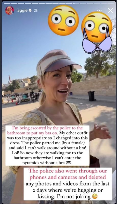 السائحة التي تبين انها مدونة أميركية شهيرة تدعى "آغي" Aggie، كانت قامت ببث مباشر عبر حسابها في انستغرام للحظات التي تلت اقتيادها من قبل رجل الامن من اجل اجبارها على ارتداء ملابسها.