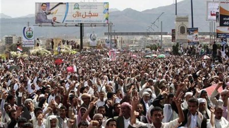وخرج عشرات الاف المحتجين الى الشوارع من جديد بعد ظهر الثلاثاء للفت الانتباه الى مطالبهم قبل تقرير من المتوقع أن يعرضه مبعوث الامم المتحدة لليمن أمام مجلس الامن التابع للامم المتحدة.