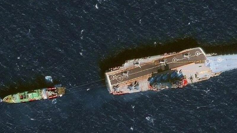 انتشرت صورة التقطت من الجو على شبكات التواصل الاجتماعي، أظهرت سفينة تجر حاملة الطائرات الروسية الوحيدة "أديمرال كوزنيتسوف"، ما فسره البعض بأن "الأدميرال" المتجه إلى سوريا قد تعطل.