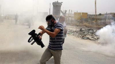 اعتدت قوات الاحتلال بشكل عنيف على مسيرة فلسطينية على حاجز قلنديا شمال القدس وفرق المشاركين فيها.