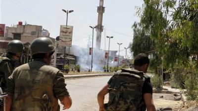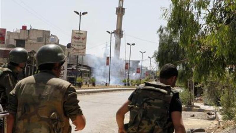 جنود سوريون في احد شوارع بلدة دوما