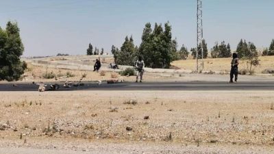 نشرت مواقع تواصل سورية، صورا لمجموعات من المسلحين وهم يقطعون الطريق الدولي عمان-دمشق، في الجانب السوري.